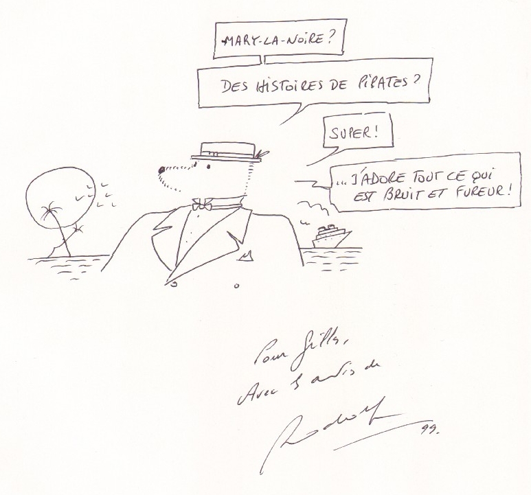 Il a toujours quelque chose à dire. c'est très sympathique de discuter avec lui sur ses voyages au Tibet et autre. Album CREVE LE MALIN chez RACKHAM dédicacé à Illzach le 11/11/1995.